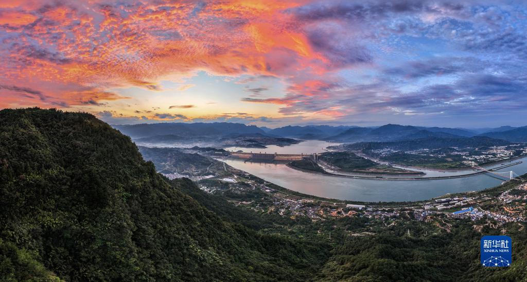 這是9月29日在湖北省宜昌市拍攝的長(cháng)江三峽水利樞紐工程(無(wú)人機全景照片)。