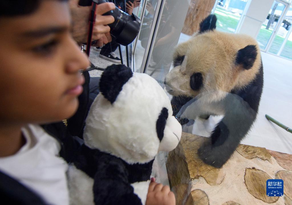 10月19日,在卡塔爾首都多哈的豪爾熊貓館,人們觀(guān)看大熊貓。