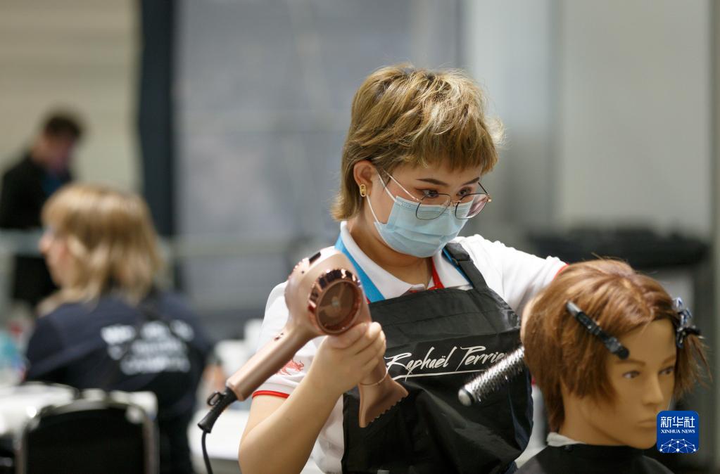 2022年世界技能大賽特別賽芬蘭賽區比賽19日舉行開(kāi)幕式。4名來(lái)自中國的選手參與花藝、美發(fā)、美容和時(shí)裝技術(shù)4個(gè)項目的角逐。新華社發(fā)(卡勒·帕爾基寧攝)
