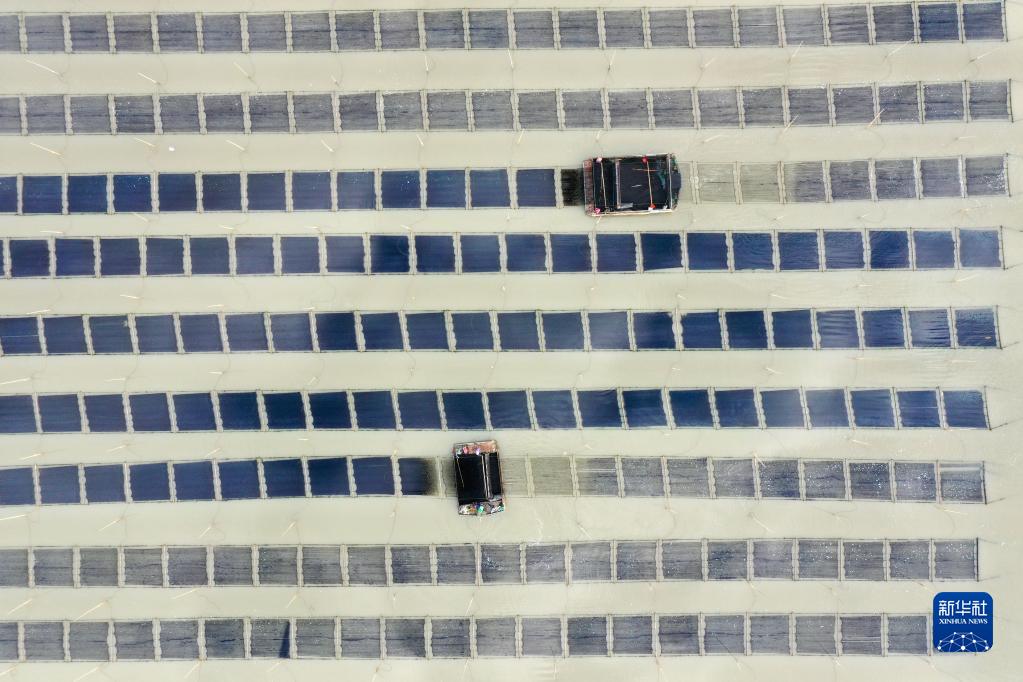 金秋十月,福建省寧德市霞浦縣6.5萬(wàn)畝海上養殖紫菜迎來(lái)收獲時(shí)節,漁民們操作收割船在大海中采收頭水紫菜,展開(kāi)一幅海上秋收畫(huà)卷。霞浦縣素有“中國紫菜之鄉”美譽(yù),形成紫菜育苗、種植、加工全產(chǎn)業(yè)鏈條,年產(chǎn)值近10億元。紫菜成為當地群眾增收致富的支柱產(chǎn)業(yè)。