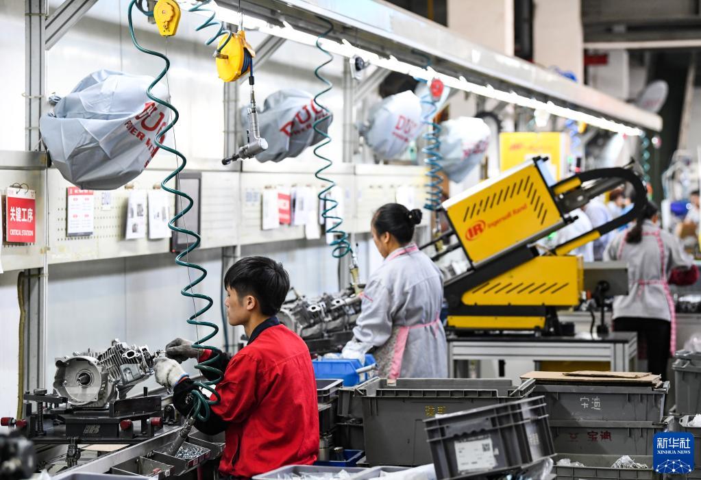 10月19日,在位于重慶市璧山區的重慶大江動(dòng)力設備制造有限公司,工人在生產(chǎn)車(chē)間作業(yè)。