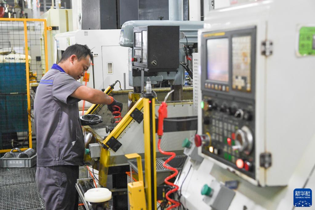 10月19日,在位于重慶市璧山區的重慶藍黛變速器有限公司,工人在生產(chǎn)車(chē)間作業(yè)。