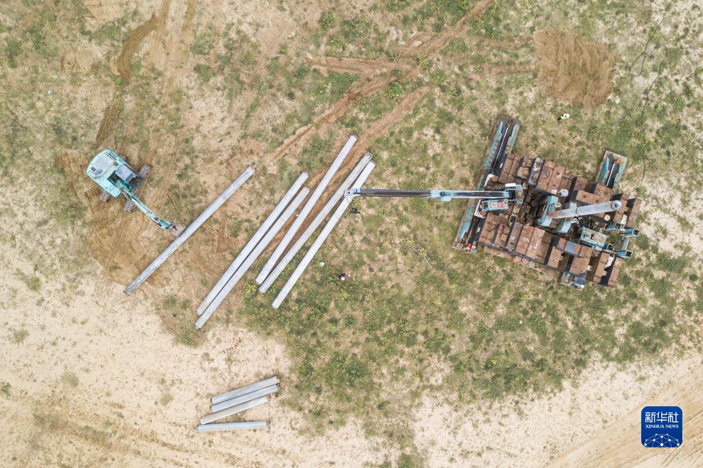 10月21日,在海南東方臨港產(chǎn)業(yè)園東方明陽(yáng)新能源高端裝備產(chǎn)業(yè)基地項目工地,工人在進(jìn)行樁基施工(無(wú)人機照片)。