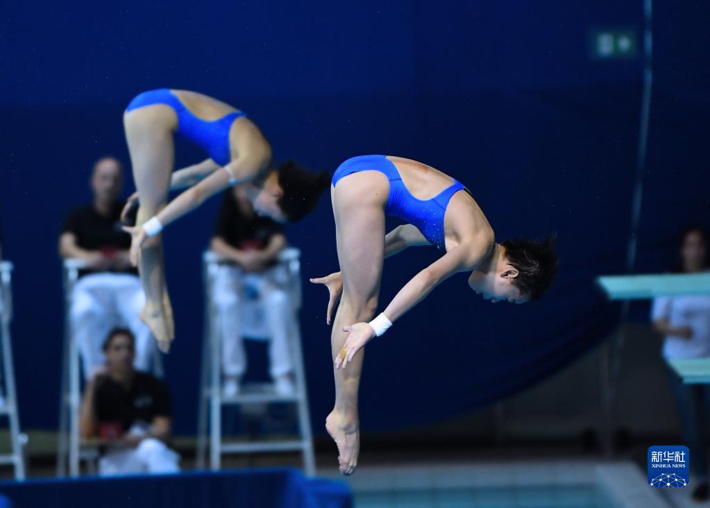10月21日,陳芋汐/全紅嬋(前)在比賽中。