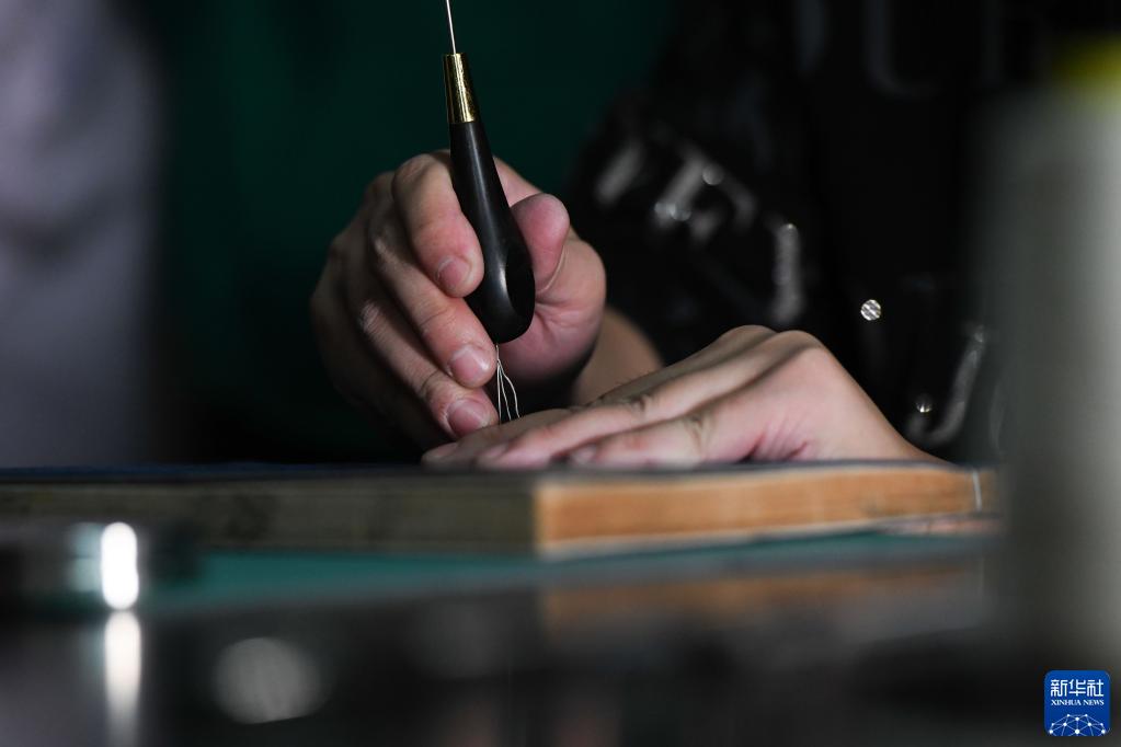 10月20日,在安徽中醫藥大學(xué)圖書(shū)館古籍部,古籍修復師茆可人在裝訂古籍。