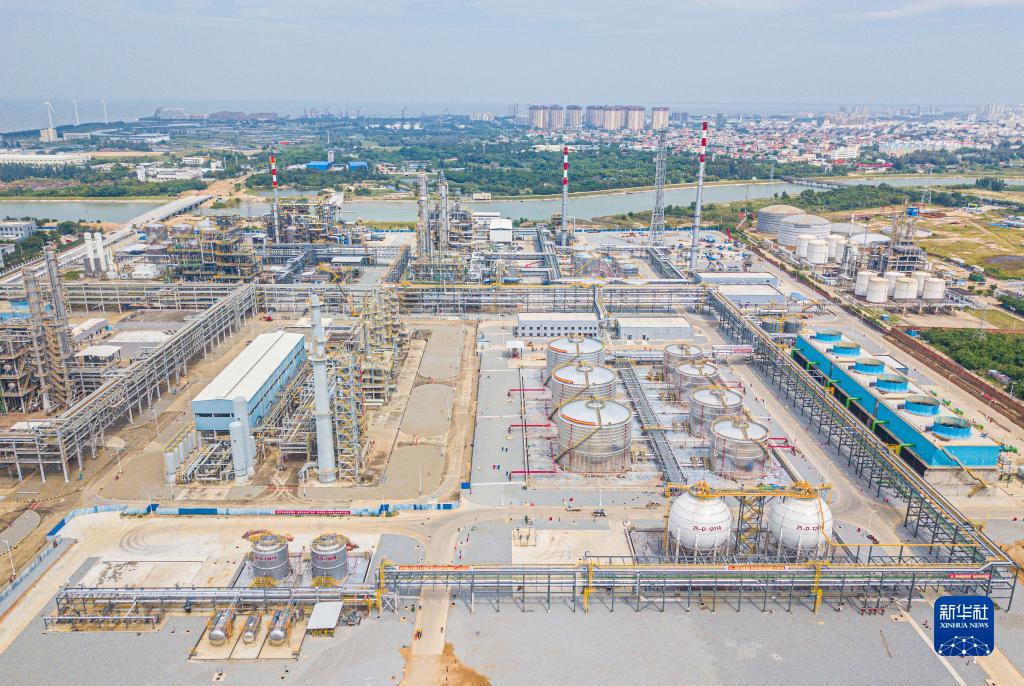 這是10月22日在海南東方臨港產(chǎn)業(yè)園拍攝的海南精細化工二期工程丙烯腈系列裝置項目(無(wú)人機照片)。
