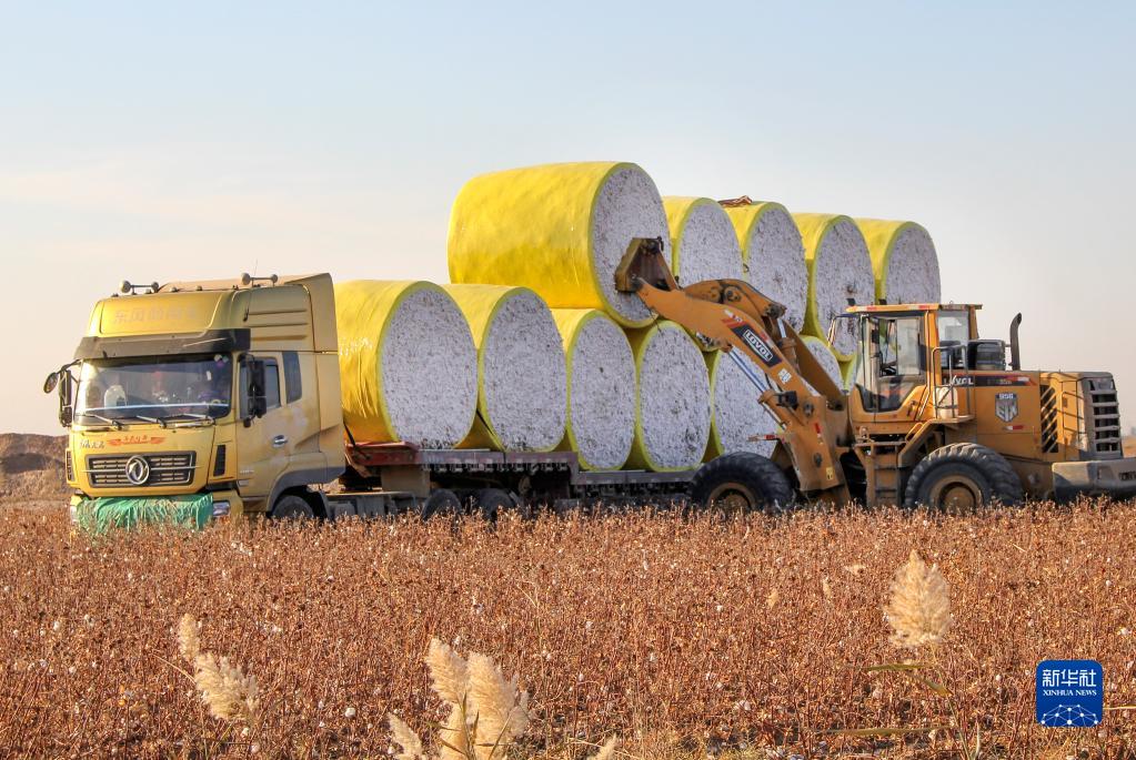 秋日,我國最大棉花生產(chǎn)基地新疆進(jìn)入棉花大規模采收季,大型機械忙碌在天山南北的棉田之中。