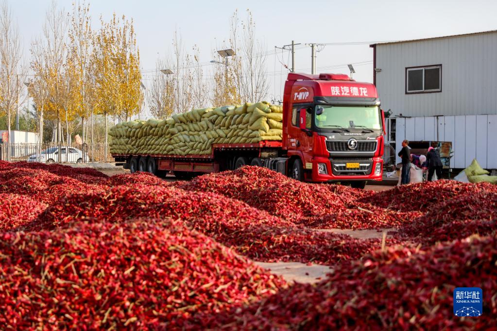 10月25日,在開(kāi)魯縣東風(fēng)鎮一家紅干椒銷(xiāo)售企業(yè)的廠(chǎng)區內,裝滿(mǎn)紅干椒的卡車(chē)準備開(kāi)往四川。