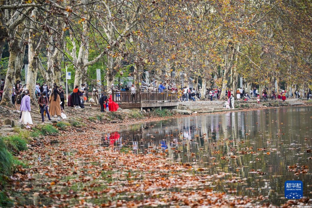 10月25日,市民在貴陽(yáng)市花溪國家城市濕地公園黃金大道觀(guān)賞游玩。
