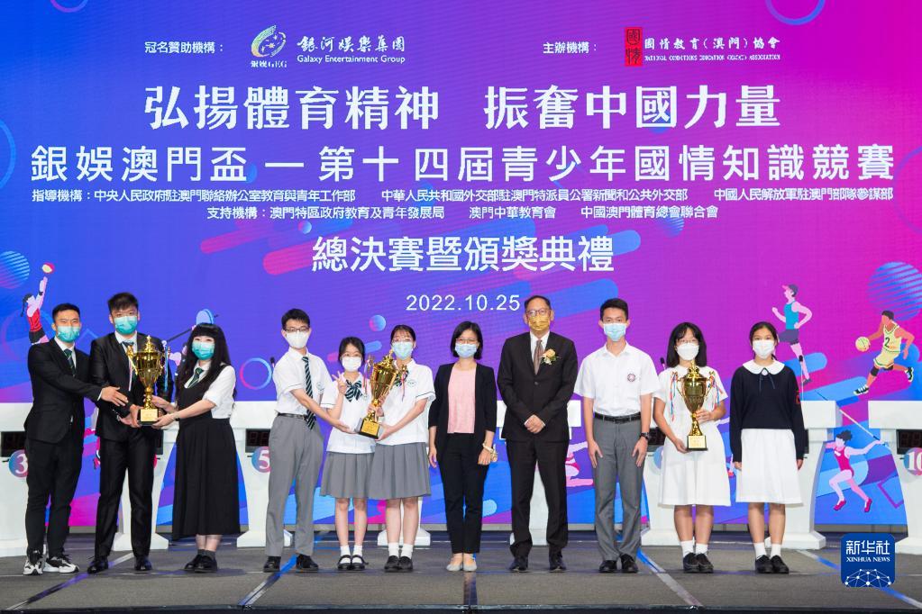 新華社澳門(mén)10月25日電(記者李寒芳 劉剛)由國情教育(澳門(mén))協(xié)會(huì )主辦的“第十四屆青少年國情知識競賽”總決賽暨頒獎典禮25日在澳門(mén)舉行,教業(yè)中學(xué)、培正中學(xué)和澳門(mén)理工大學(xué)分別奪得了兩個(gè)中學(xué)組和一個(gè)大學(xué)組的冠軍。