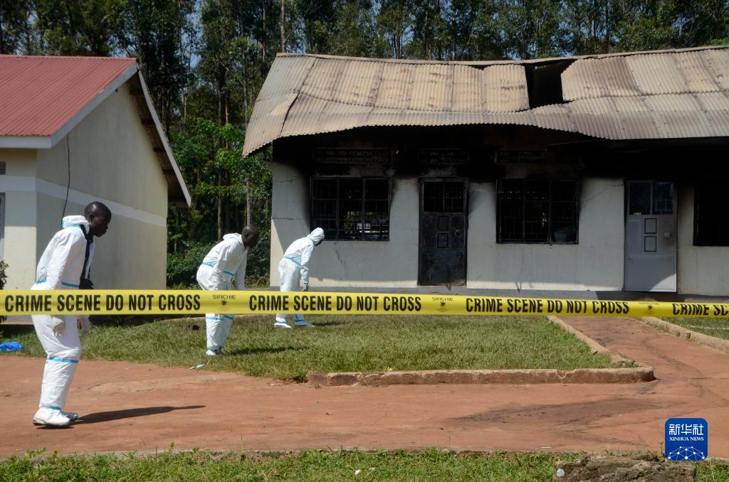 10月25日,在烏干達中部穆科諾地區一所盲人學(xué)校,工作人員在火災現場(chǎng)收集證據。