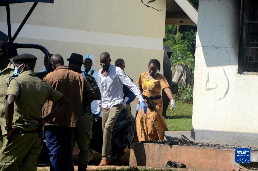 10月25日,在烏干達中部穆科諾地區一所盲人學(xué)校,人們轉移在火災中喪生的兒童遺體。