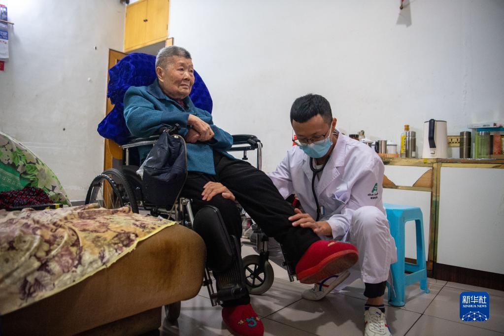 在重慶市綦江區文龍街道菜壩社區,醫護人員上門(mén)為老人提供康養服務(wù)(10月17日攝)。