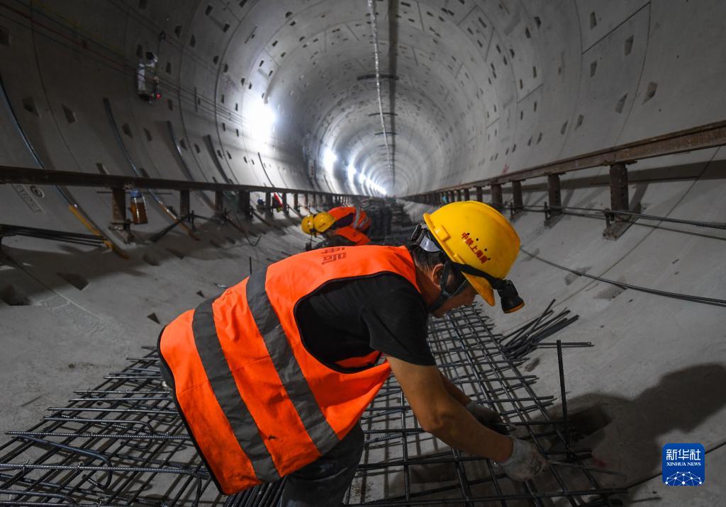 10月26日,施工人員在廣州地鐵11號線(xiàn)綁扎道床基底鋼筋。