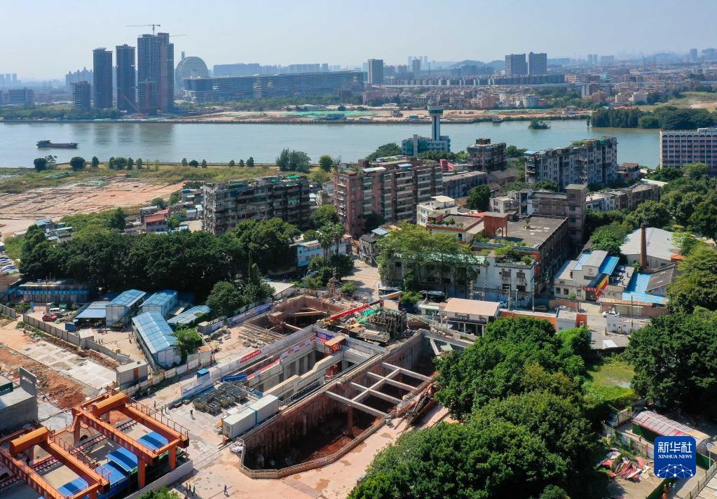 廣州地鐵11號線(xiàn)在鶴洞東至南石路區間穿越珠江后航道(10月26日攝,無(wú)人機照片)。