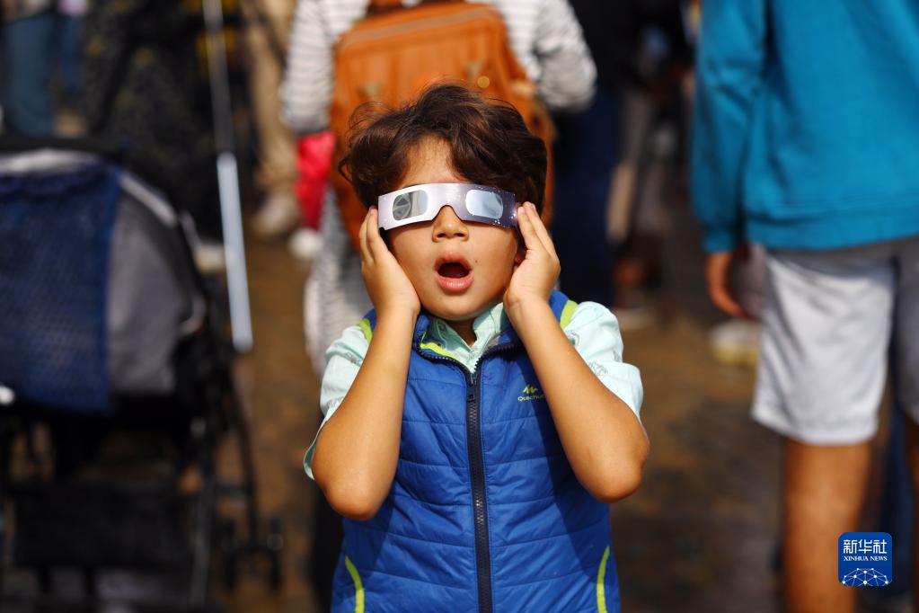 10月25日,在埃及首都開(kāi)羅,一名男孩觀(guān)看日偏食景象。
