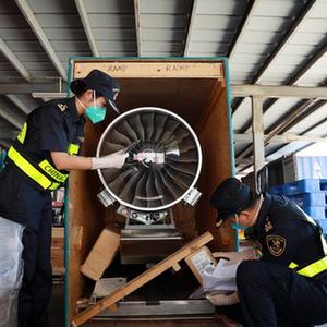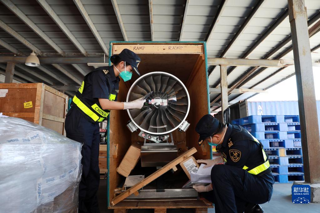 10月26日,拱北海關(guān)關(guān)員為本屆航展首批境外參展物資辦理驗放手續。新華社發(fā)(俞波 攝)