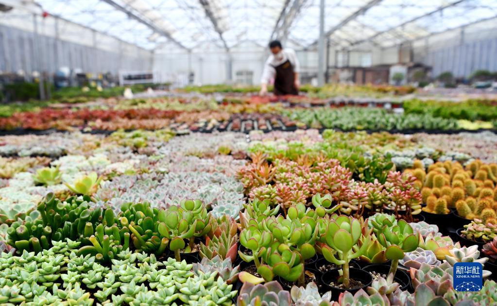 工作人員在西安市長(cháng)安區秦嶺花世界農業(yè)景區的多肉植物溫棚里管護植物(10月26日攝)。