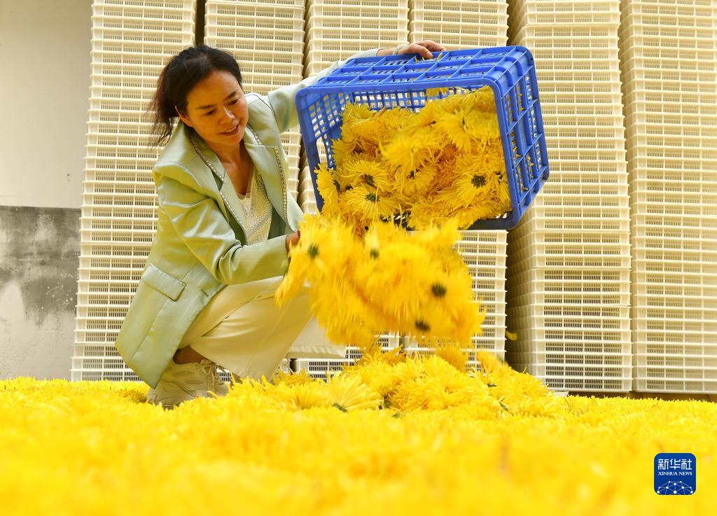 近日,湖南省衡陽(yáng)市南岳區壽岳鄉岳林村種植的高山皇菊進(jìn)入采收期,村民搶抓晴好天氣采摘菊花、加工菊花茶。當地依托高山林地特點(diǎn),發(fā)展高山皇菊種植產(chǎn)業(yè),推動(dòng)農旅融合,助力鄉村振興。