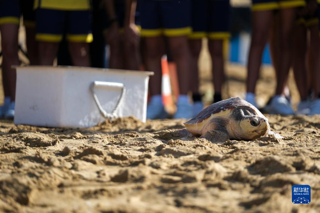 10月27日,在馬耳他馬尼卡塔的金海灣,一只經(jīng)過(guò)救治后康復的海龜被放歸大海。