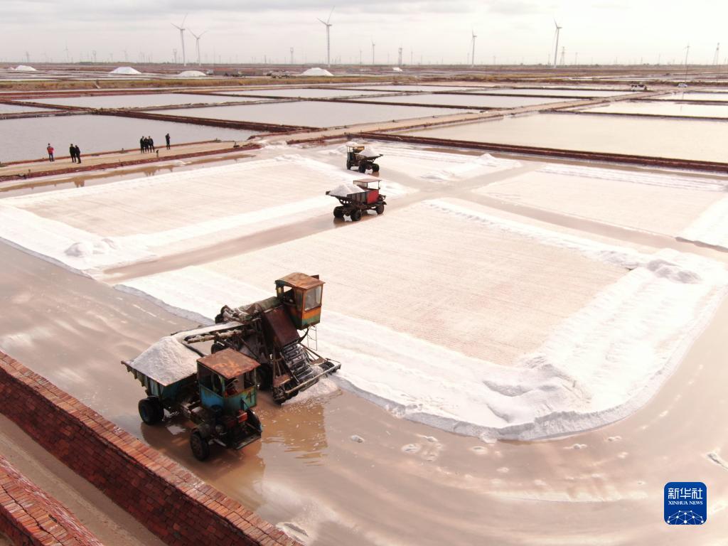 目前,山東省濱州市沾化區濱海鎮轄區的40萬(wàn)畝鹽田已進(jìn)入秋鹽收獲的繁忙時(shí)節,收獲季將持續至11月上旬。