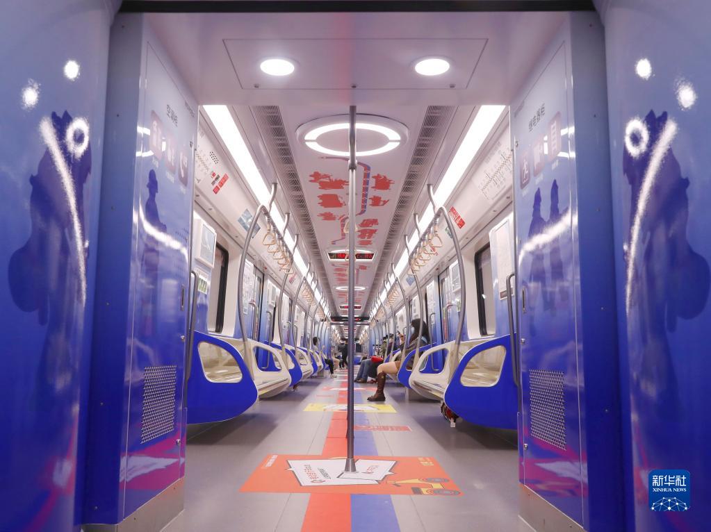 10月28日拍攝的運行中的上海消防119號地鐵主題列車(chē)內景。