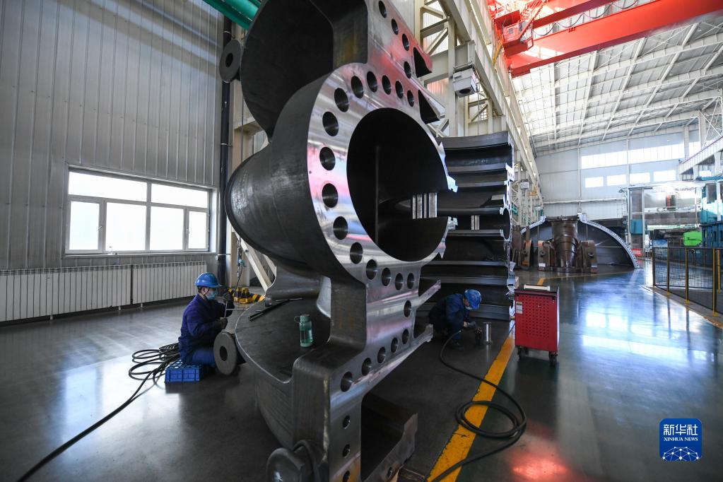 哈電集團哈爾濱汽輪機廠(chǎng)有限責任公司工人在生產(chǎn)車(chē)間作業(yè)(10月27日攝)。