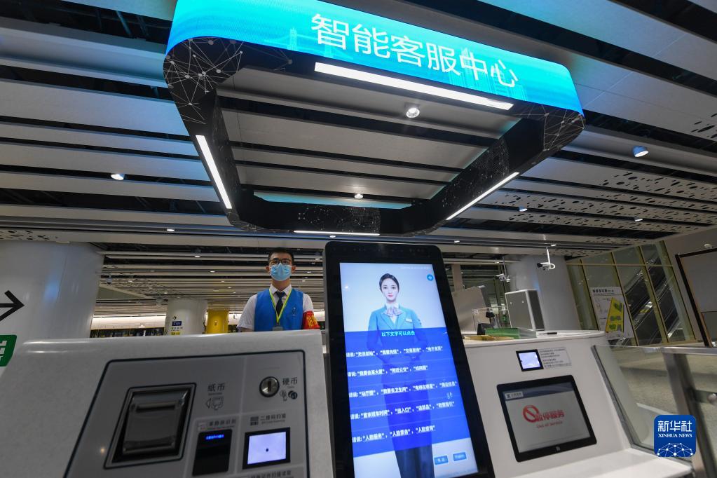 10月28日,在深圳地鐵黃木崗樞紐,工作人員在智能客服中心工作。