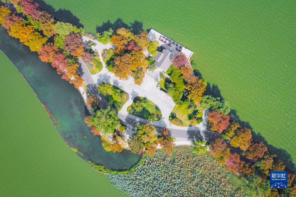 10月25日拍攝的江蘇省南京玄武湖公園秋景(無(wú)人機照片)。