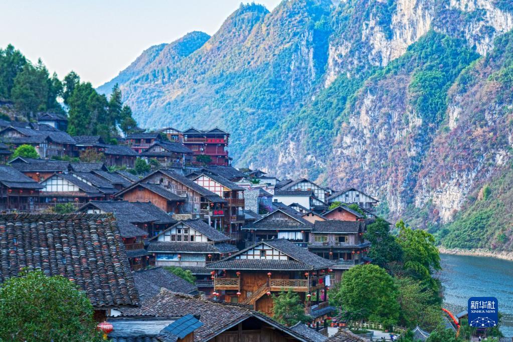這是10月4日在重慶市酉陽(yáng)土家族苗族自治縣拍攝的位于烏江江畔的龔灘古鎮秋景。