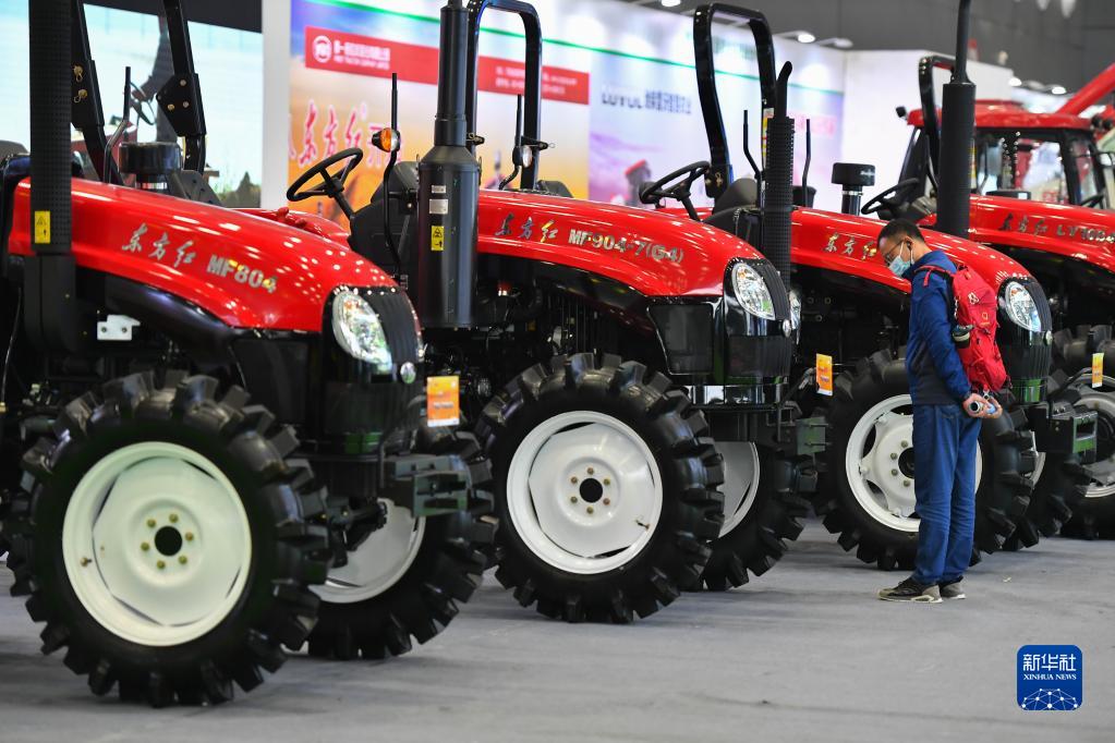 10月28日,參觀(guān)者在農業(yè)博覽會(huì )現場(chǎng)參觀(guān)農機裝備。