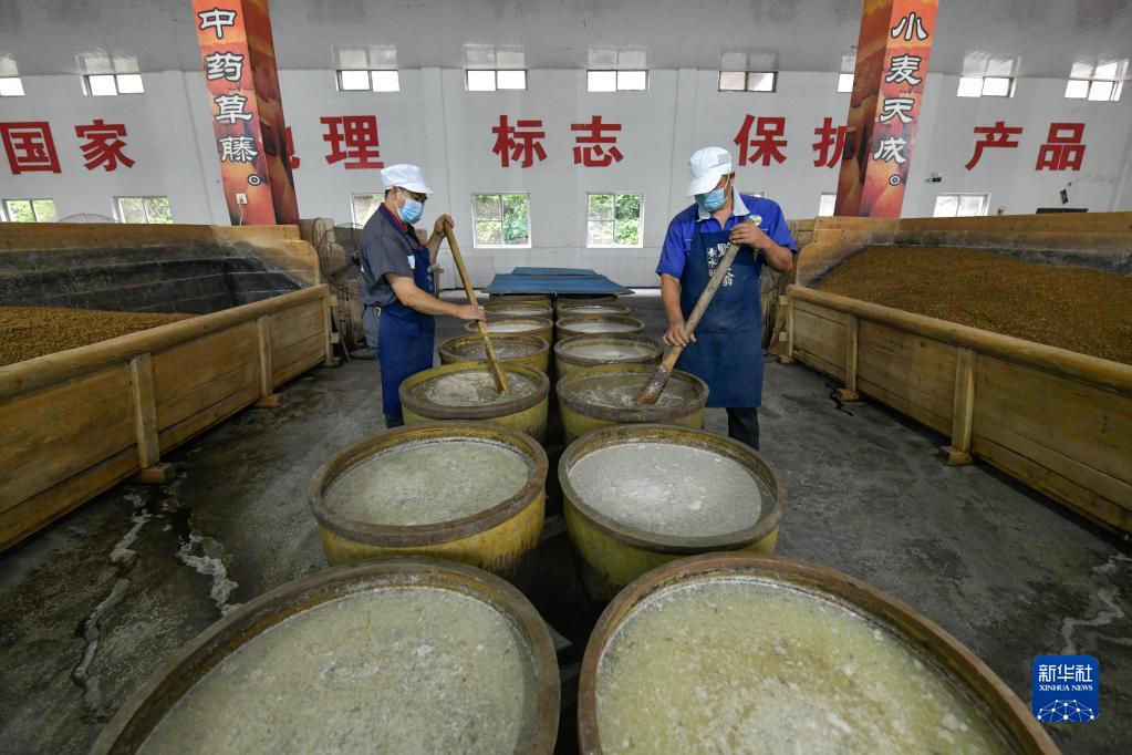 赤水曬醋以中藥制作醋曲,用大米、糯米等作原料,經(jīng)過(guò)30多道工序制作而成,具有香、濃、酸、醇等特點(diǎn),入口風(fēng)味獨特,回味悠長(cháng)。近年來(lái),當地政府加大宣傳和保護力度,大力挖掘和培育鄉土人才傳承這項古老技藝,通過(guò)“線(xiàn)上+線(xiàn)下”展示和銷(xiāo)售,讓赤水曬醋這項古老技藝在大山里重新煥發(fā)生機。