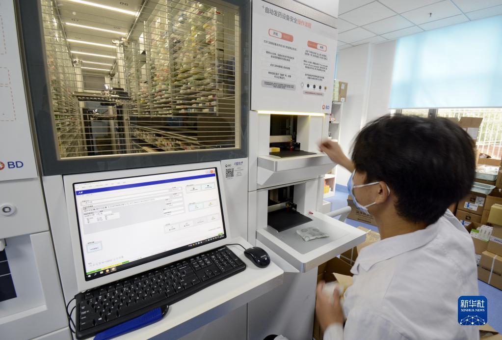 北京市豐臺區大紅門(mén)社區衛生服務(wù)中心安裝了智能化配藥系統,高效率服務(wù)社區群眾(10月26日攝)。