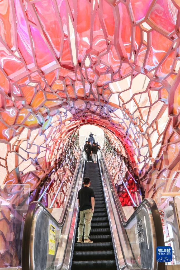 10月28日,顧客在??趪H免稅城內乘坐電梯。