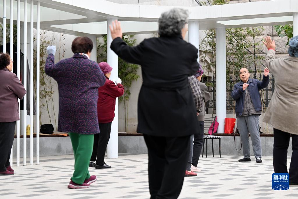 在天津市和平區文化村社區,老年人在適老化改造中新建的小區廣場(chǎng)上跳舞(10月28日攝)。