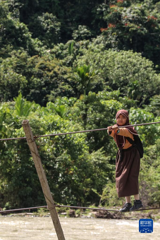 在印度尼西亞西亞齊地區,部分村落的孩子們需要通過(guò)鋼索橫跨河流上學(xué)。