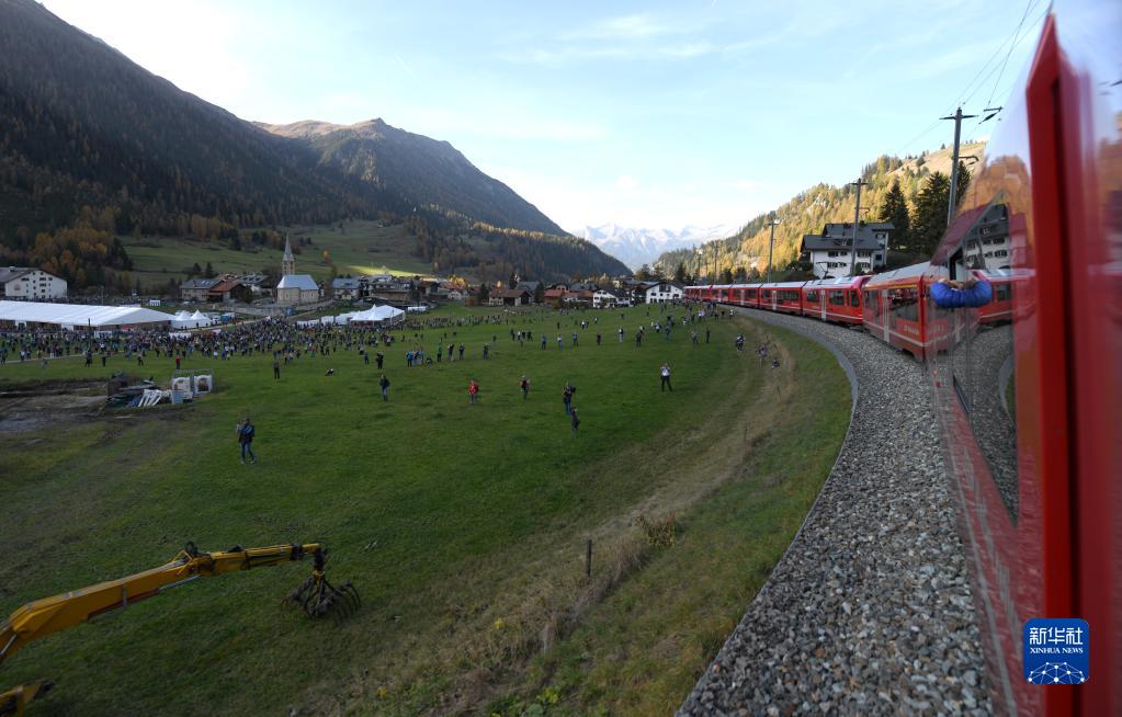 10月29日,世界最長(cháng)窄軌客運列車(chē)在位于瑞士阿爾卑斯山區的雷蒂亞鐵路網(wǎng)上行駛。