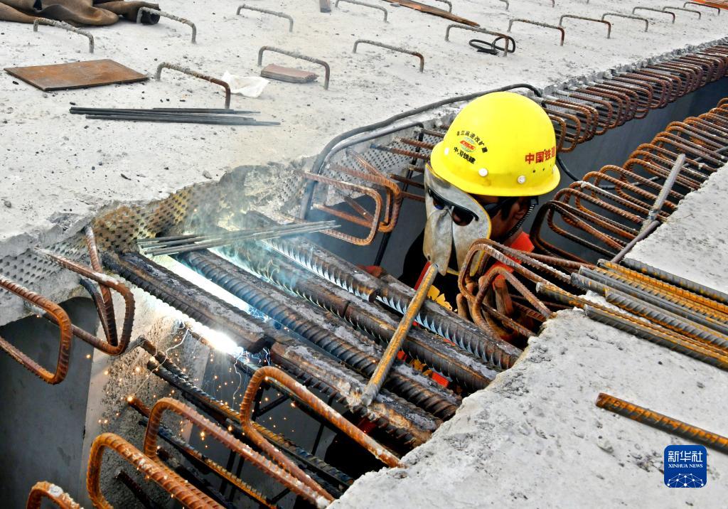 10月30日,一名中鐵十四局建設者在青蘭高速公路雙埠至河套段女姑口特大橋上焊接鋼梁。