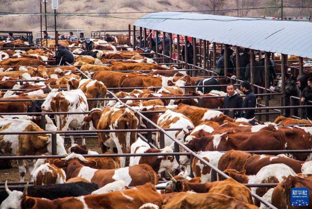 當日,內蒙古通遼市科爾沁左翼后旗伊胡塔牛市迎來(lái)交易日,來(lái)自遼寧、吉林、河北、山東等地的買(mǎi)家和經(jīng)紀人云集牛市。伊胡塔牛市年交易牛頭數超50萬(wàn)頭,交易日均成交5000余頭,年交易額超50億元。近年來(lái),在做好疫情防控的前提下,當地穩步發(fā)展肉牛產(chǎn)業(yè),養牛已經(jīng)成為當地農牧民增收致富的主要途徑之一。