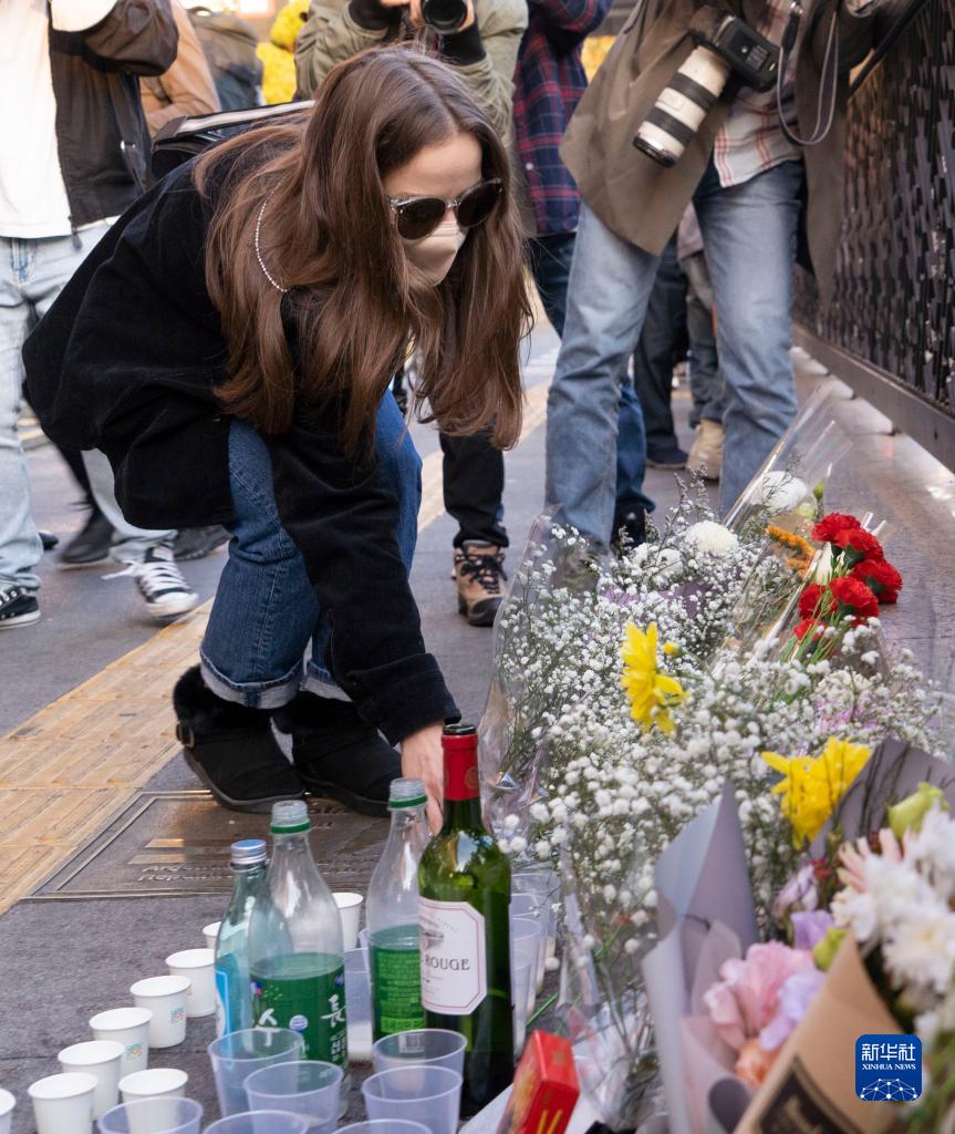 10月30日,民眾在韓國首爾市龍山區梨泰院洞一帶悼念踩踏事故遇難者。