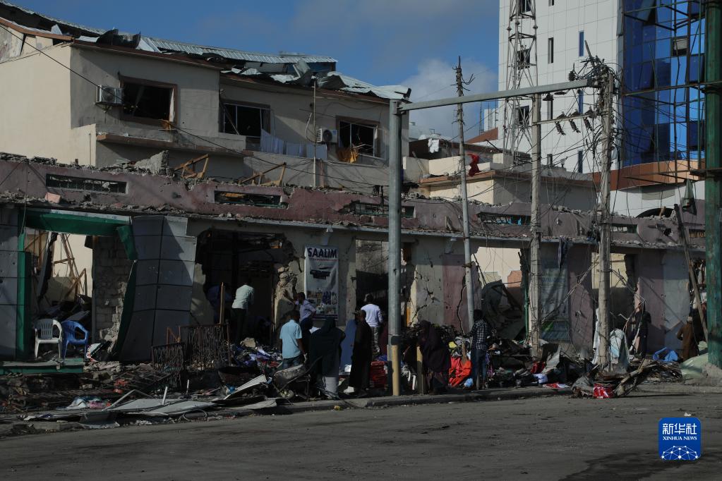 這是10月30日在索馬里首都摩加迪沙拍攝的爆炸現場(chǎng)。