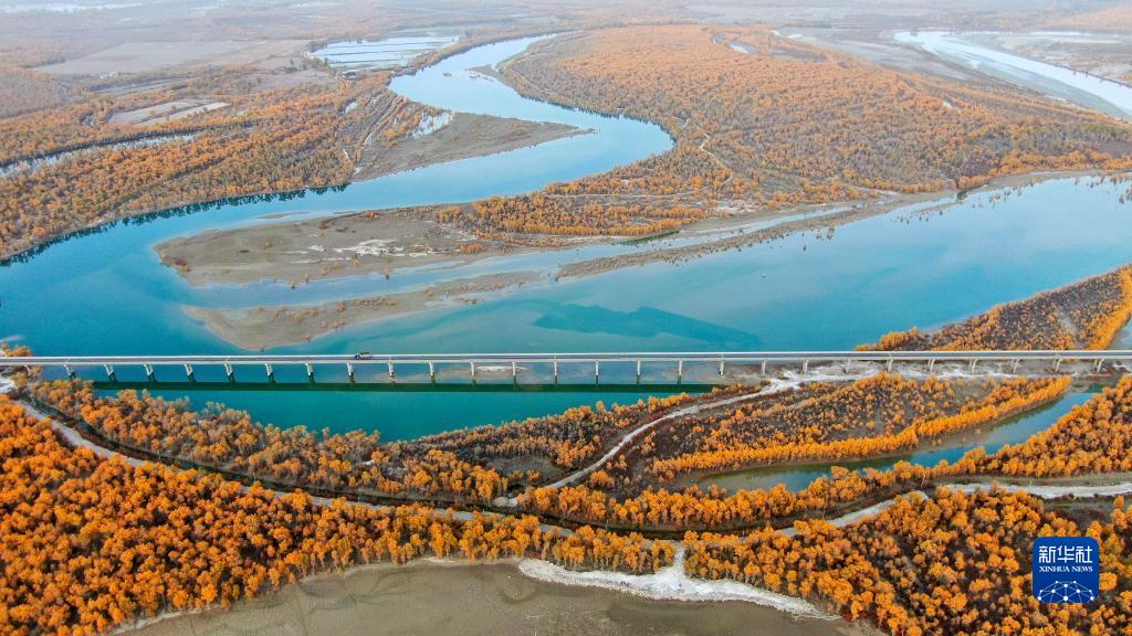 深秋時(shí)節,新疆塔里木河流域胡楊林披上“金裝”,與碧水、大漠相互映襯,構成一幅秀美的生態(tài)畫(huà)卷。新疆沿塔里木河流域分布著(zhù)約1500萬(wàn)畝胡楊林,是世界面積最大的胡楊林區。