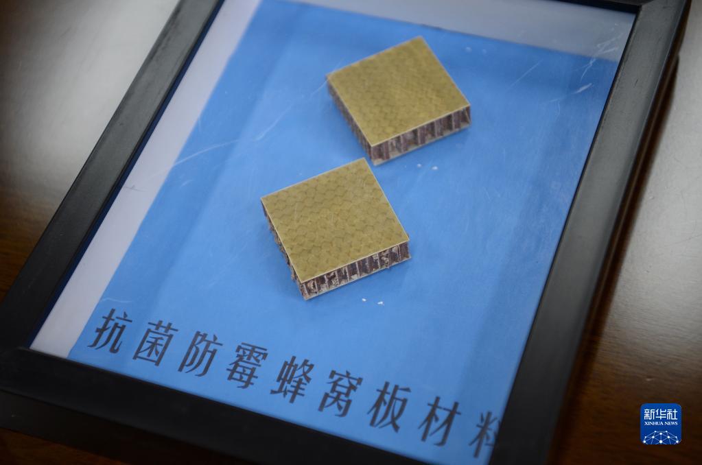 這是中國航天科技集團有限公司第七研究院第七設計部宇航團隊研發(fā)的抗菌防霉蜂窩板材料(10月19日攝)。
