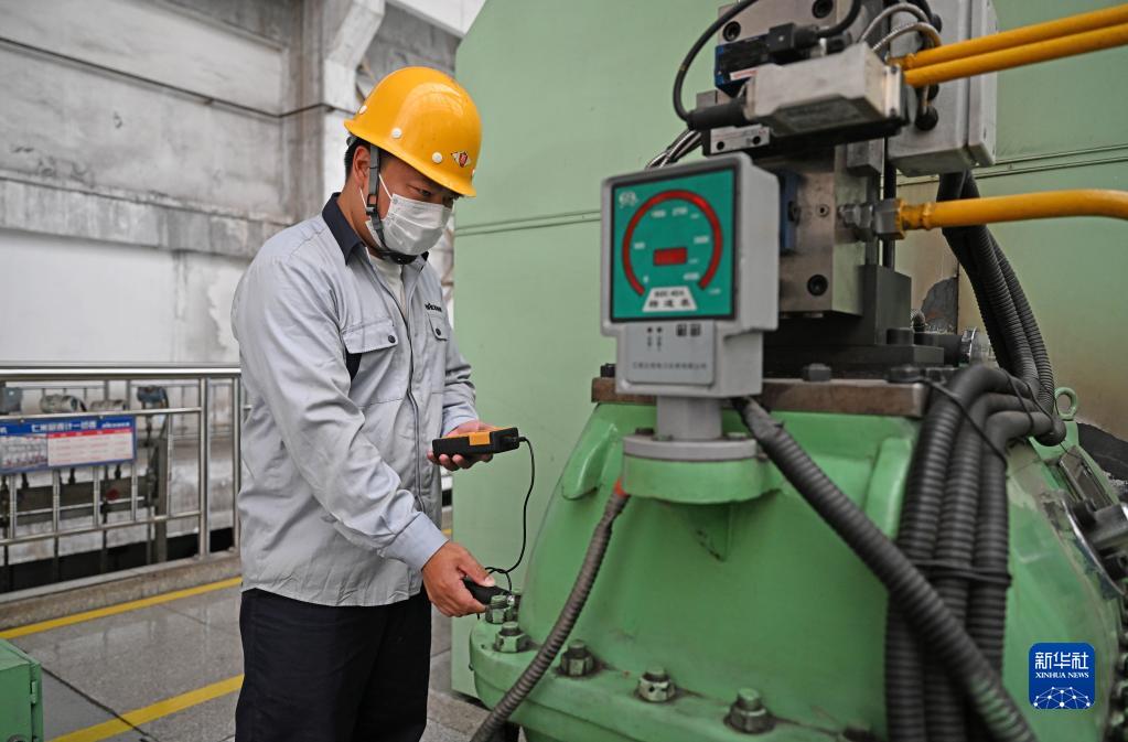 11月1日,天津泰達熱電能源管理有限公司濱海熱電廠(chǎng)工作人員在汽輪機車(chē)間檢查設備。