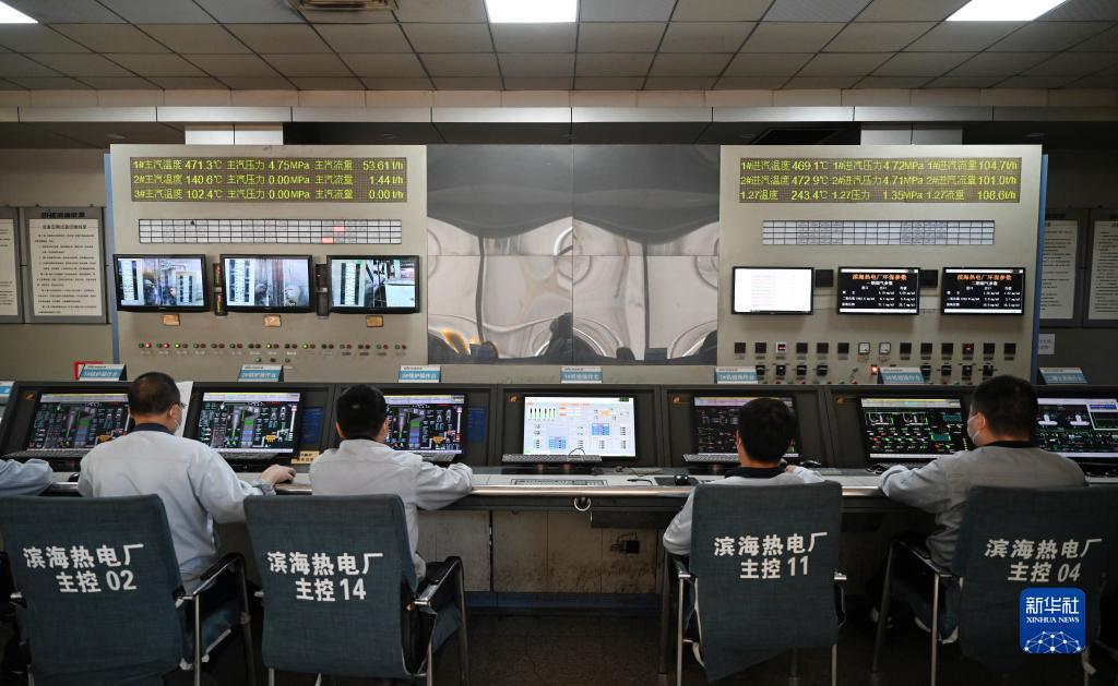 11月1日,工作人員在天津泰達熱電能源管理有限公司濱海熱電廠(chǎng)主控室監控鍋爐運行狀況。