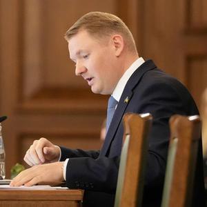 11月1日,在拉脫維亞里加的議會(huì )大廳,斯米爾滕斯當選議長(cháng)后致辭。