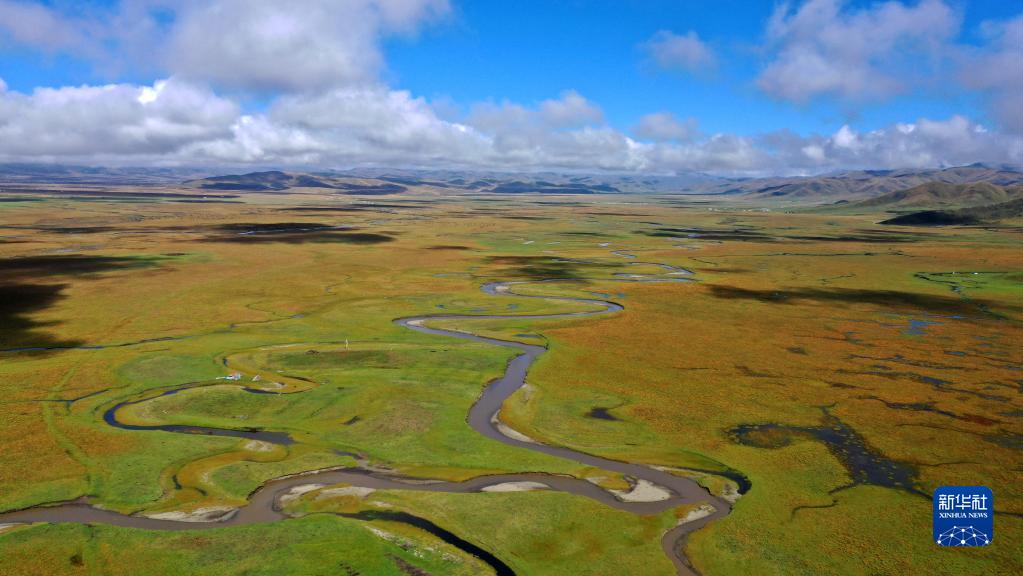這是瑪曲縣阿萬(wàn)倉濕地秋景(2022年9月21日攝,無(wú)人機照片)。