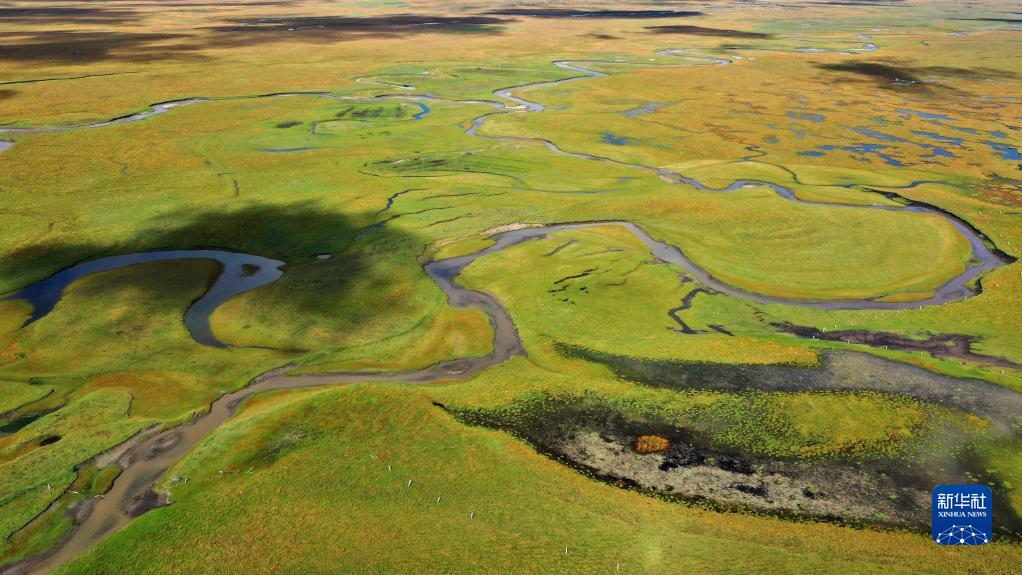 這是2022年9月21日拍攝的瑪曲縣阿萬(wàn)倉濕地(無(wú)人機照片)。