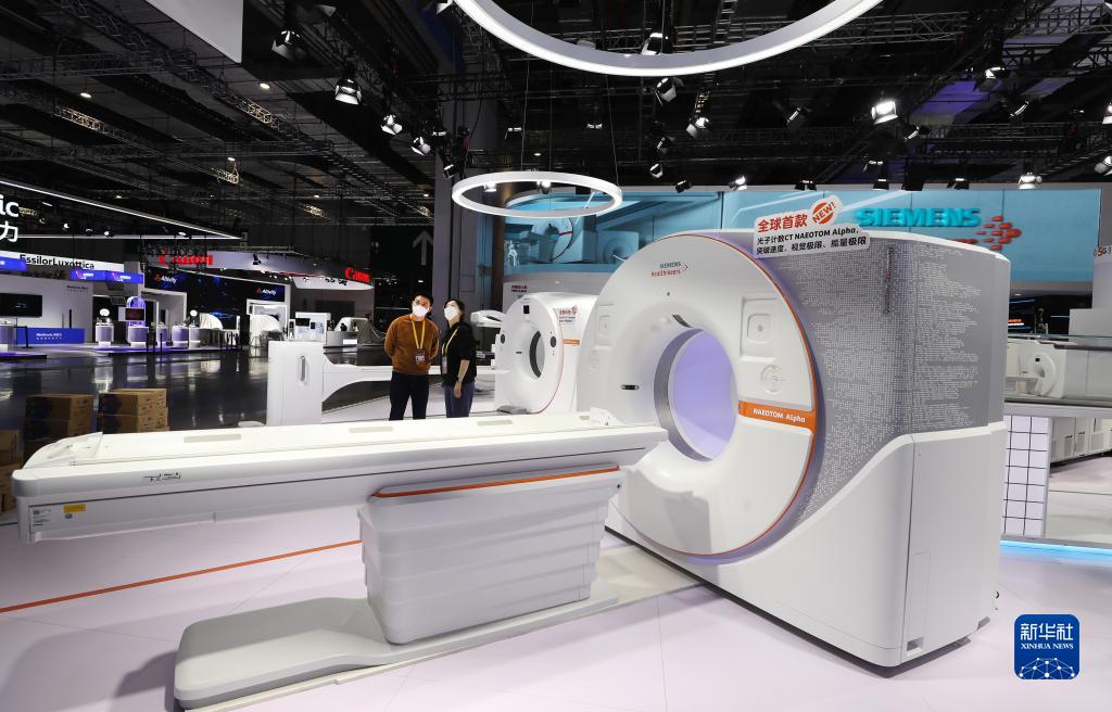 11月2日拍攝的德國西門(mén)子公司在進(jìn)博會(huì )展臺展出的大型醫療設備。