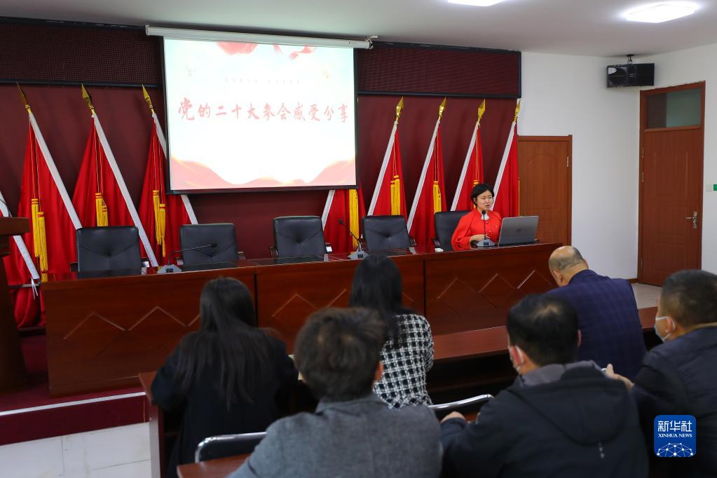 11月1日,吳書(shū)香在沈陽(yáng)市蘇家屯區解放街道向街道黨員和社區群眾宣講黨的二十大精神。
